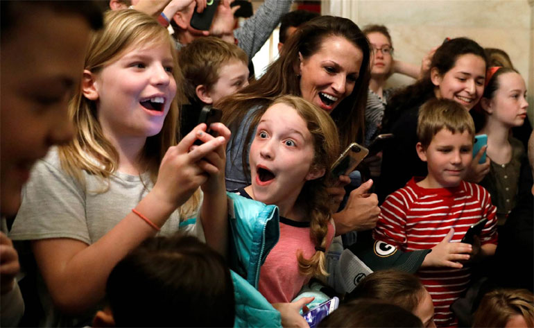 Οι μαθητές του Χριστιανικού Σχολείου Μπράιαργουντ της Αλαμπάμπα ήταν από τους πρώτους που έσπευσαν να επισκεφθούν τον Λευκό Οίκο.