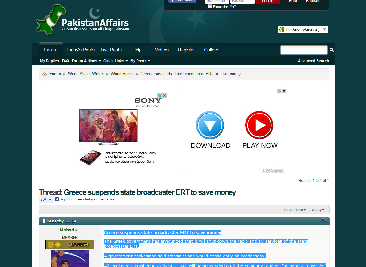 Η ιστοσελίδα «Pakistan Affairs» φιλοξενεί άρθρο για το κλείσιμο της ΕPT, υπογραμμίζοντας ότι εντάσεται στις προσπάθειες της ελληνικής κυβέρνησης να μειώσει τις κρατικές δαπάνες και να μειώσει τον αριθμό των δημοσίων υπαλλήλων.