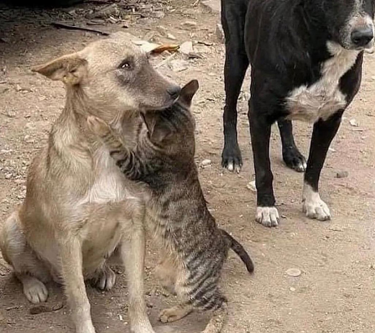 Ο φόβος και η αγωνία για την επιβίωση, μετά το τρομακτικό χτύπημα του Εγκέλαδου στην Τουρκία, μπορεί να μονοιάσει ακόμη και προαιώνιους… «εχθρούς» όπως είναι ο σκύλος με τη γάτα.