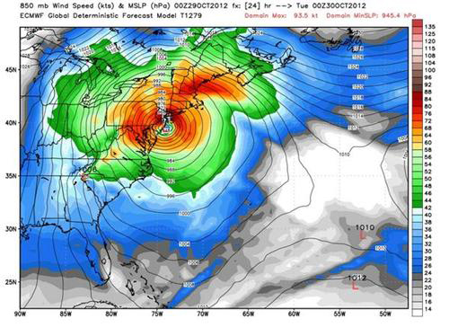 Επιπλέον, σε αντίθεση με άλλους κυκλώνες που εξασθενούν αφού περάσουν στην ενδοχώρα, ο «Sandy» αναμένεται να διατηρήσει την έντασή του, λόγω του συνδυασμού των δύο συστημάτων.