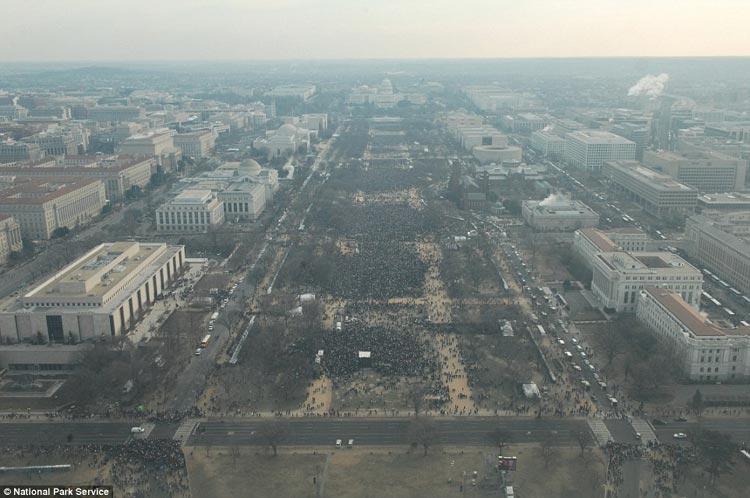 Ο Τραμπ μία μέρα μετά την ορκωμοσία του είχε δηλώσει: «Άνοιξα την τηλεόραση, είδα ειδήσεις και έδειχναν άδειο το πάρκο. Και λέω “μια στιγμή”. Έβγαλα έναν λόγο, κοίταξα κάτω και είδα ένα με ενάμισι εκατομμύριο κόσμο. Λέγανε ψέματα, ήταν γεμάτο το πάρκο μέχρι πίσω».