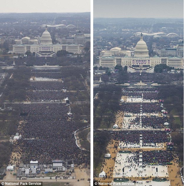 Η υπηρεσία του Εθνικού Πάρκου της Ουάσινγκτον έδωσε στη δημοσιότητα φωτογραφίες από την ορκωμοσία του προέδρου Τραμπ, οι οποίες φαίνεται να μην ανταποκρίνονται σε όσα υποστήριξε το επιτελείο του νέου προέδρου των ΗΠΑ, ότι, δηλαδή, εκείνη τη μέρα είχε συγκεντρωθεί πάνω από 1,5 εκατ. κόσμου.