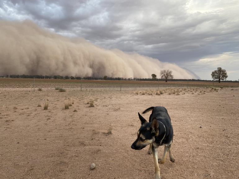 Την ίδια ώρα ένα τεράστιο σύννεφο κόκκινης σκόνης κάλυψε αρκετές πόλεις της Νέας Νότιας Ουαλίας. Κάτοικοι έχουν καταγράψει σε εντυπωσιακές ενός τοίχους σκόνης το οποίο προχωρούσε απειλητικά. Κάποιοι περιέγραψαν πως στη μέση της ημέρας τα πάντα σκοτείνιασαν.