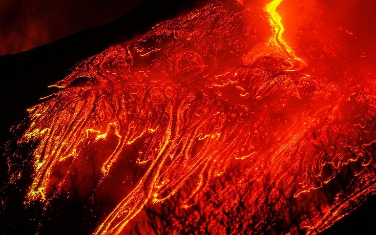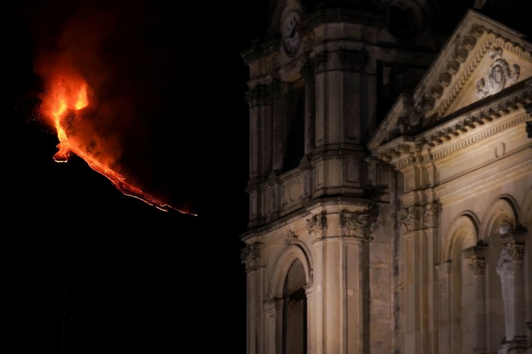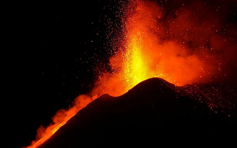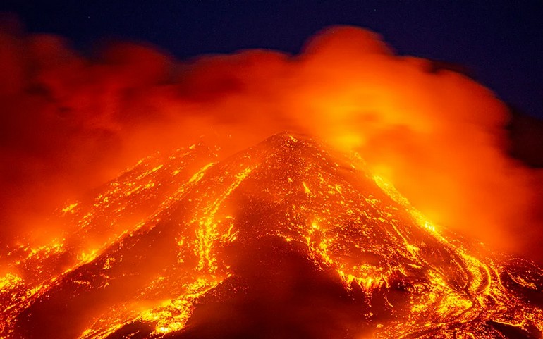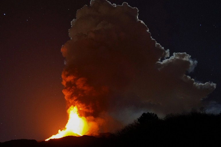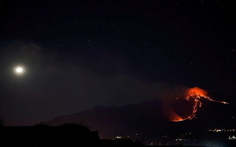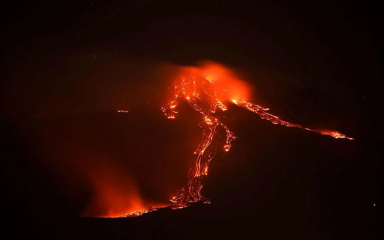 To ηφαίστειο της Αίτνας εκρήγνυται ξανά και η καυτή λάβα του φωτίζει τον ουρανό της Σικελίας.