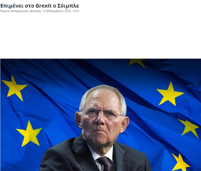 Σε μια προσπάθεια να αποδείξει ότι δεν υπάρχει κάποιο είδος «εμμονής» με την Ελλάδα, ο κ. Σόιμπλε είπε: «Δεν θα βρείτε ούτε ένα απόσπασμα δικό μου, είτε αντιστοίχως της Γερμανίδας καγκελαρίου που να κατηγορείται η Ελλάδα. Έχουμε κάνει πάρα πολλές προσπάθειες για να λειτουργήσει η ελληνική οικονομία. Τίποτε, όμως, δεν λειτούργησε».