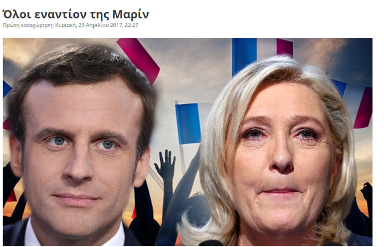 Σύμφωνα με τις τελευταίες δημοσκοπήσεις ο φιλελεύθερος υποψήφιος Εμανουέλ Μακρόν φαίνεται να είναι ο αδιαμφισβήτητος νικητής με ένα ποσοστό που κυμαίνεται από 60% έως και 63%Σύμφωνα με τις τελευταίες δημοσκοπήσεις ο φιλελεύθερος υποψήφιος Εμανουέλ Μακρόν φαίνεται να είναι ο αδιαμφισβήτητος νικητής με ένα ποσοστό που κυμαίνεται από 60% έως και 63%.