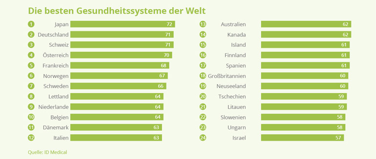 Αν κάποιος επιλέξει στη Γερμανία να έχει ιδιωτική ασφάλιση αυτό δεν του παρέχει περισσότερες παροχές από ότι θα είχε με την κρατική ασφάλιση καθώς έχει πρόσβαση στους ίδιους γιατρούς και στα ίδια νοσοκομεία.Με την γερμανική κρατική ασφάλιση ο ασθενής μπορεί να επιλέξει να πάει δωρεάν σε όποιο εξωτερικό γιατρό επιθυμεί.