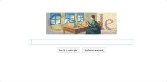Σήμερα, 7 Νοεμβρίου συμπληρώνονται 144 χρόνια από τη γέννηση της τιμημένης με δύο βραβεία Νόμπελ Μαρίας Κιουρί και η Google επέλεξε να αφιερώσει το doodle της σημερινής ημέρας στη Γαλλίδα επιστήμονα.