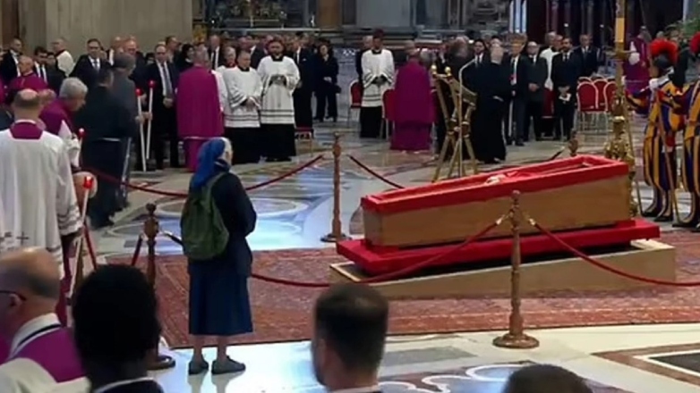 Η γαλλο-αργεντινή μοναχή, η αδελφή Ζενεβιέβ Τζενίνγκρος, εθεάθη σε πλάνα από την πρώτη μέρα του δημόσιου προσκυνήματος του Φραγκίσκου να πλησιάζει σε απαγορευμένο σημείο για να προσευχηθεί δίπλα στο φέρετρο του αείμνηστου Ποντίφικα.