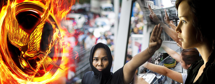 Ο χαιρετισμός που χρησιμοποιούν οι επαναστάτες στη σειρά βιβλίων και ταινιών «Αγώνες Πείνας» (Hunger Games), υψώνοντας τα τρία μεσαία δάχτυλα του χεριού τους, έχει προκαλέσει «πονοκέφαλο» στο στρατιωτικό καθεστώς της Ταϊλάνδης. Και αυτό γιατί η εν λόγω χειρονομία υιοθετήθηκε από πολίτες (κυρίως φοιτητές) στην χώρα που θέλουν να εκφράσουν τη δυσαρέσκειά τους κατά της χούντας.