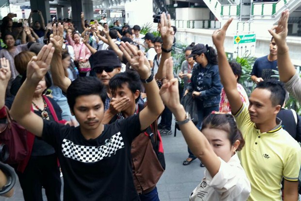 Πριν από λίγες ημέρες, πέντε φοιτητές συνελήφθησαν επειδή σε εκδήλωση στην οποία βρισκόταν ο στρατηγός Πραγιούτ Τσαν-Ο-Τσα, πρωθυπουργός της χώρας χρησιμοποίησαν την χειρονομία-σύμβολο.