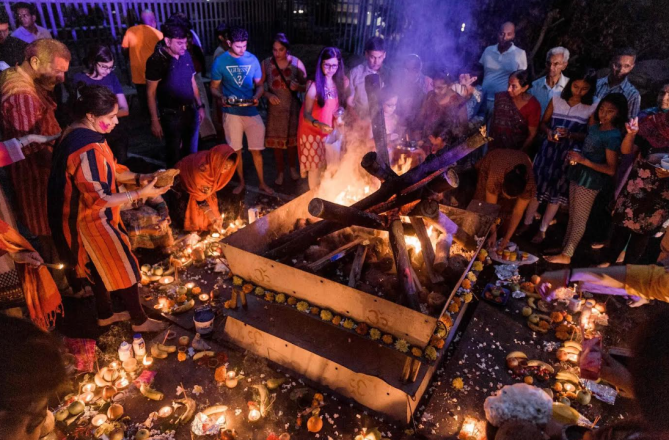 Όλα τα είδη των πραγμάτων ρίχνονται στις φωτιές, όπως ξύλα, φύλλα και φαγητό, σε μια συμβολική κάθαρση του κακού και θρίαμβο του καλού.
