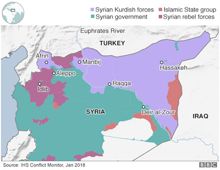 Κουρδικές περιοχές στις οποίες η Τουρκία στοχεύσει περιλαμβάνουν την πόλη Manbij, όπου η πλειοψηφία του πληθυσμού είναι Άραβες και τις οποίες οι Ηνωμένες Πολιτείες μπορεί να είναι πρόθυμες να παραχωρήσουν, ή η πόλη Tal Rifaat ακόμη πιο δυτικά, αν η Ρωσία κάνει πως κλείνει τα μάτια. Η ρωσική αεροπορική κάλυψη ήταν αποφασιστική για τις προηγούμενες στρατιωτικές επιτυχίες της Τουρκίας στη Συρία.