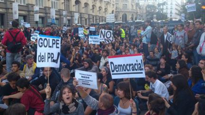 Παρά τα εκτεταμένα επεισόδια που σημειώθηκαν κατά τη διάρκεια της κινητοποίησης την Τρίτη στην πλατεία Νεπτούνο, πλησίον του Κοινοβουλίου, και τις 35 συλλήψεις και 64 τραυματισμούς, οι Ισπανοί διαδήλωσαν για δεύτερη συνεχή ημέρα, απαιτώντας εκτός από την απαλλαγή από τα μέτρα λιτότητας της κυβέρνησης Ραχόι και την απευλευθέρωση των συλληφθέντων της Τρίτης.