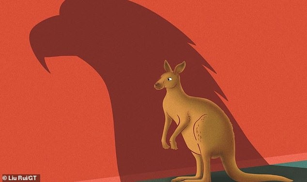 Σε ένα ξεχωριστό άρθρο την Κυριακή, η ίδια εφημερίδα ισχυρίστηκε ότι η Αυστραλία – στενός σύμμαχος των ΗΠΑ – είναι το πιόνι στην περιφερειακή στρατηγική της Αμερικής τα τελευταία χρόνια, και δημιούργησε ένα καρτούν με ένα καγκουρό που προβάλλει τη σκιά ενός αετού, το εθνικό έμβλημα της Αμερικής.