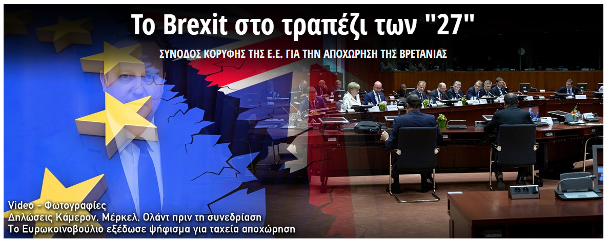 «Καμία διαπραγμάτευση δεν θα γίνει ανάμεσα στην Ευρωπαϊκή Ένωση και τη Βρετανία, πριν την ενεργοποίηση του άρθρου 50» αναφέρει η κοινή δήλωση των «27» Ευρωπαίων ηγετών που δημοσιοποιήθηκε μετά τις εργασίες της συνόδου κορυφής για το Brexit.
