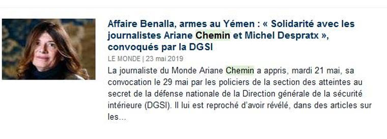 Η κλήτευση της δημοσιογράφου έρχεται σε λιγότερο από έναν μήνα αφότου άλλοι τρεις συνάδελφοί της από ειδησεογραφικό ιστότοπο κλήθηκαν επίσης στο DGSI για δημοσίευση ιστορίας που εξέθετε πως η Γαλλία πουλούσε όπλα, και πλοία στη Σαουδική Αραβία και στα Ηνωμένα Αραβικά Εμιράτα «εν γνώσει της» θα χρησιμοποιούνταν για τη διεξαγωγή του πολέμου στην Υεμένη, κατά παράβαση της συνθήκης όπλων του 2014.