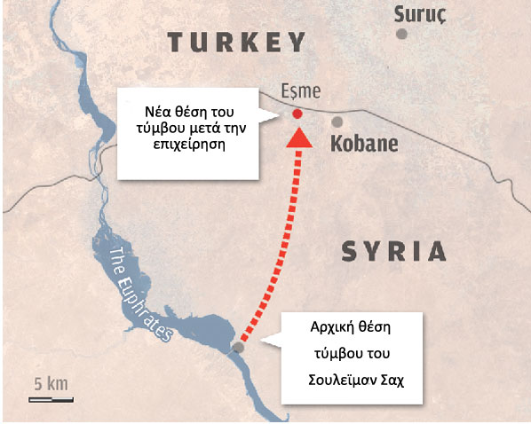 Σε δήλωσή του ο πρόεδρος της Τουρκίας Ρετζέπ Ταγίπ Ερντογάν είπε πως θα κατασκευαστεί νέος τύμβος, μέσα στο συριακό έδαφος, σε απόσταση 200 μέτρων από τα τουρκικά σύνορα, κοντά στο Εσμέ. Ήδη τουρκικά τεθωρακισμένα, έχουν πάρει θέσεις γύρω από τη νέα τοποθεσία, όπου σχεδιάζεται να ανεγερθεί ο νέος τύμβος. Πριν εγκαταλείψουν τον παλιό τύμβο, οι τουρκικές στρατιωτικές δυνάμεις προχώρησαν στην καταστροφή του ταφικού μνημείου «ώστε να μην μπορεί να χρησιμοποιηθεί από άλλους και για οποιοδήποτε σκοπό».