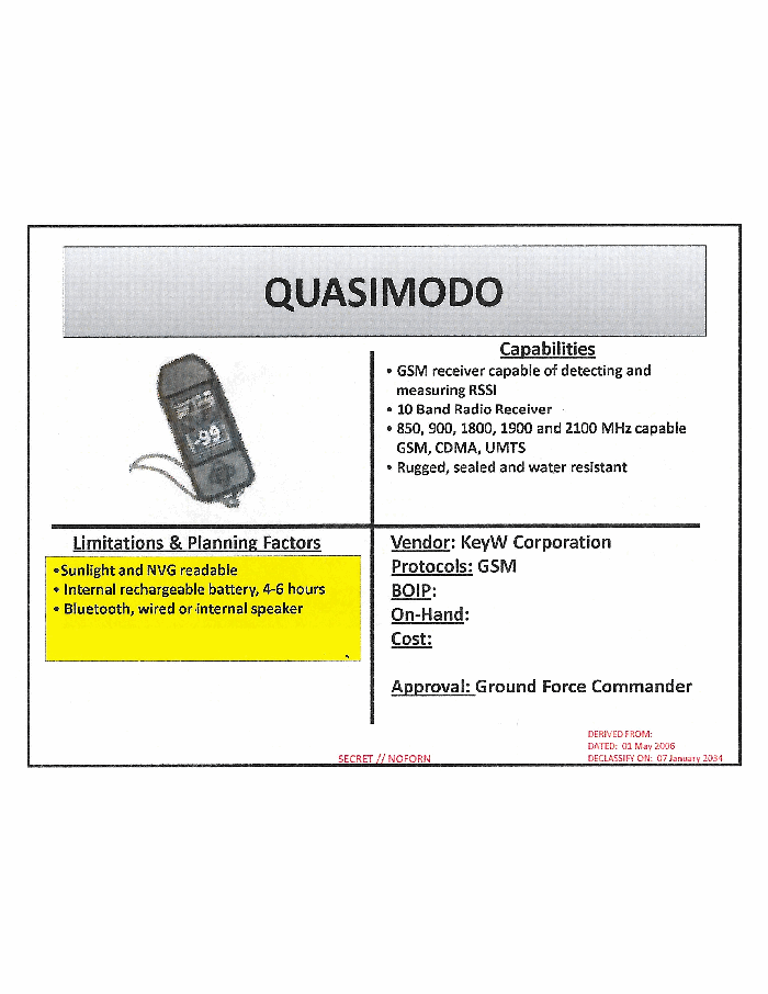 Οι ρεπόρτερ του Intercept, το Ίδρυμα Ηλεκτρονικών Συνόρων (Electronic Frontier Foundation) και η Αμερικανική Ένωση Πολιτικών Ελευθεριών (American Civil Liberties Union) ισχυρίζονται ότι το ένα τρίτο από τις συσκευές της λίστας δεν έχουν παρουσιαστεί ποτέ πριν στο κοινό.