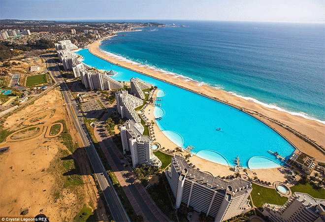 Ένα από τα πιο εντυπωσιακά παραδείγματα είναι το San Alfonso del Mar tourist complex στη Χιλή, το οποίο έχει καταλάβει και το ρεκόρ Γκίνες για τη μεγαλύτερη πισίνα στον κόσμο.