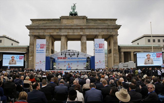 Με σύνθημα «Σήκω! Όχι ξανά μίσος για τους Εβραίους!», 6.000 άνθρωποι διαδήλωσαν στο Βερολίνο κατά του αντισημιτισμού, παρουσία του Ομοσπονδιακού Προέδρου της Γερμανίας Γιοάχιμ Γκάουκ, των προκαθημένων των μεγαλύτερων Εκκλησιών της χώρας, του Αντικαγκελάριου Ζίγκμαρ Γκάμπριελ, του υπουργού Εξωτερικών Φρανκ-Βάλτερ Σταϊνμάγερ, της Καγκελαρίου Άγγελα Μέρκελ.