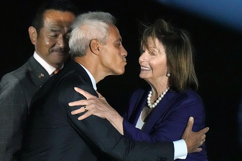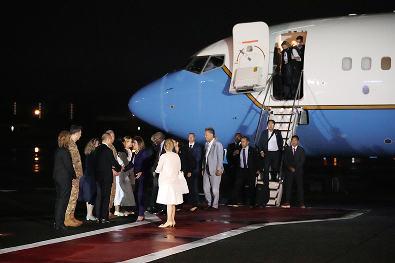 Οι δημοσιογράφοι του Γαλλικού Πρακτορείου είδαν το αεροσκάφος που μετέφερε την Πελόζι να προσγειώνεται στην αεροπορική βάση Γιόκοτα, κοντά στο Τόκιο, προερχόμενο από τη Νότια Κορέα.