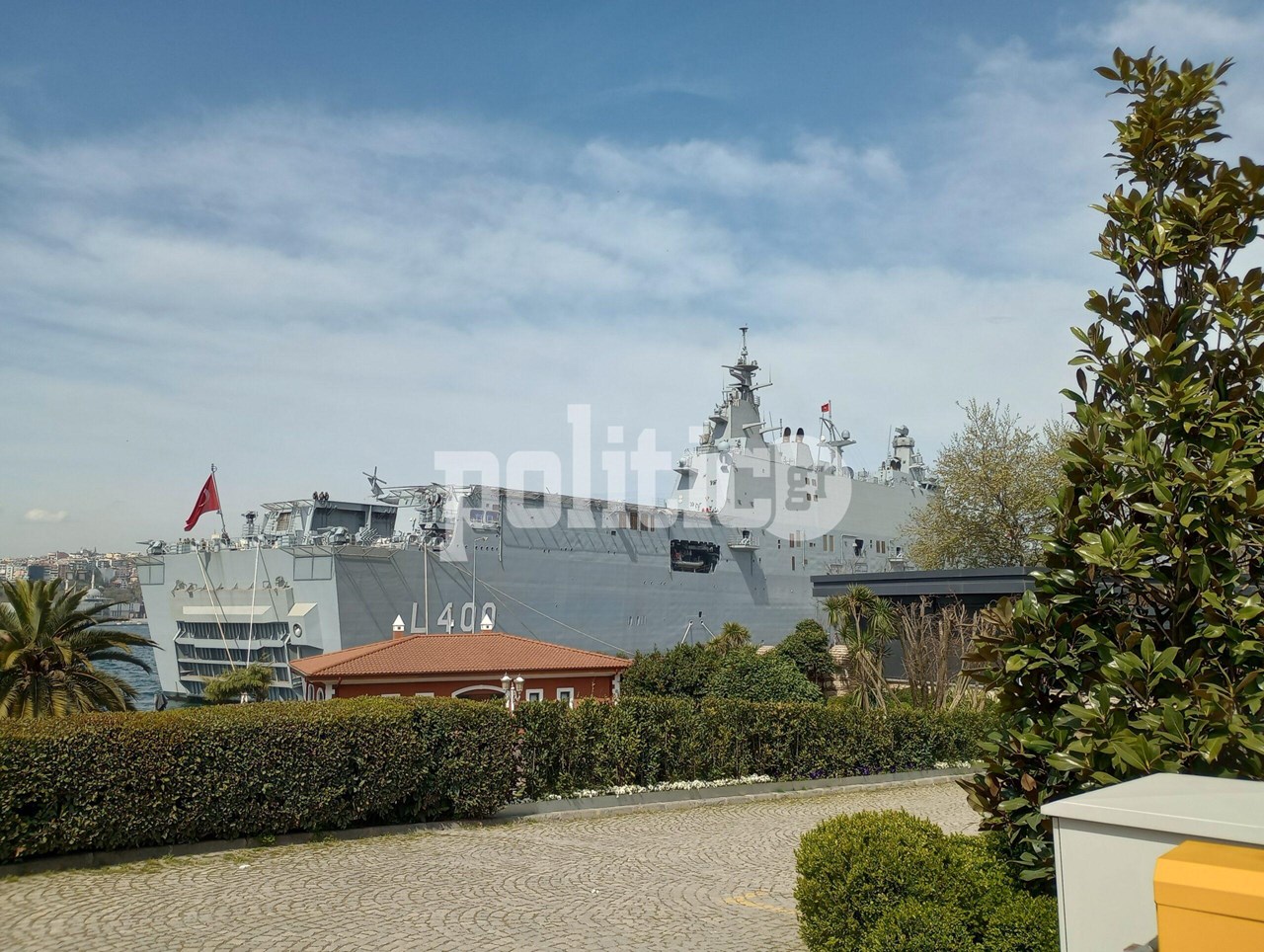 To ελικοπτεροφόρο TCG Anadolu, εθεάθη την Κυριακή του Πάσχα να διασχίζει το Βόσπορο, συνοδεία ρυμουλκών. Αυτή τη στιγμή το μεγαλύτερο πολεμικό πλοίο της Τουρκίας είναι αγκυροβολημένο σε προβλήτα στη θάλασσα του Μαρμαρά και απαγορεύεται η προσέγγισή του