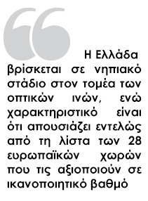 Η Ελλάδα βρίσκεται σε νηπιακό στάδιο στον τομέα των οπτικών ινών, ενώ χαρακτηριστικό είναι ότι απουσιάζει εντελώς από τη λίστα των 28 ευρωπαϊκών χωρών που τις αξιοποιούν σε ικανοποιητικό βαθμό.