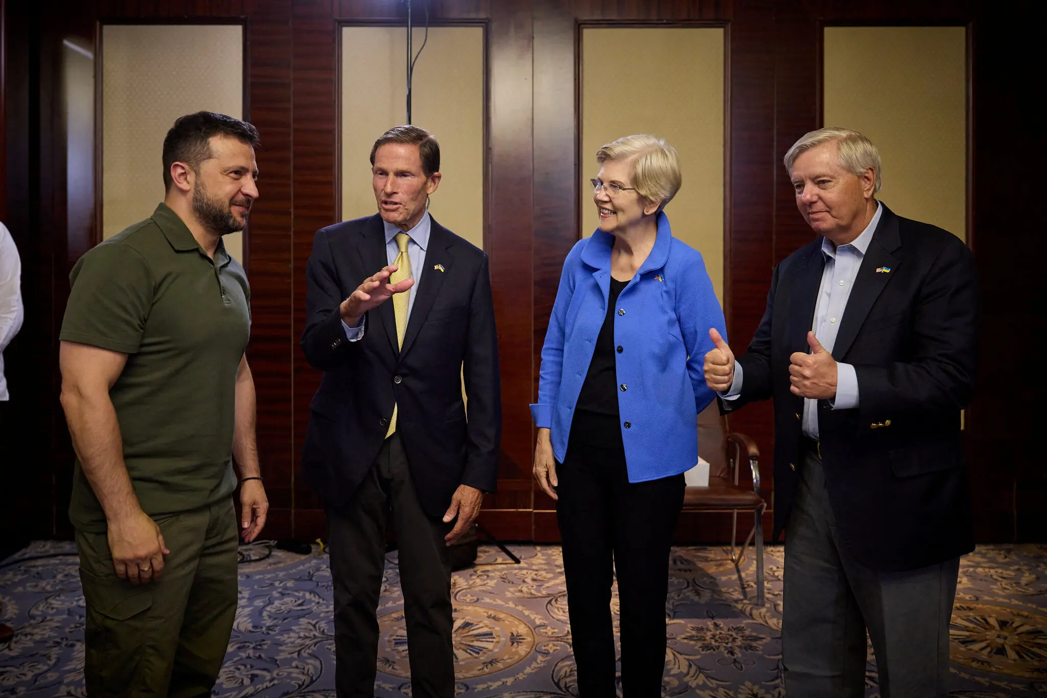 «Οι αμερικανικές πολιτικές αβεβαιότητες είναι πολύ στο μυαλό των Ουκρανών και όλης της Ευρώπης», δήλωσε ο Δημοκρατικός γερουσιαστής του Κονέκτικατ, Ρίτσαρντ Μπλούμενταλ, ο οποίος συναντήθηκε με τον Ζελένσκι στο Κίεβο τη στιγμή που ο Ουκρανός πρόεδρος επέστρεφε από την περιοδεία του για τα F-16. Την προηγούμενη εβδομάδα. «Ένας από τους στόχους εδώ, ολοφάνερα, είναι να γίνουν οι δεσμεύσεις όσο το δυνατόν πιο ξεκάθαρες και απερίφραστες».