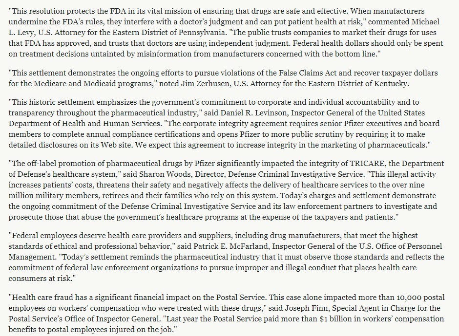 Η απόφαση για το πρόστιμο είχε παρθεί το 2009, από την κυβέρνηση του Μπαράκ Ομπάμα. Το ποσό των 2,3 δισεκατομμυρίων δολαρίων ήταν αποτέλεσμα συμβιβασμού της εταιρείας με το υπουργείο Δικαιοσύνης των ΗΠΑ, και αντανακλά το μεγαλύτερο πρόστιμο που έχει επιβληθεί στο πλαίσιο των κρατικών συστημάτων υγειονομικής κάλυψης Medicare και Medicaid.
