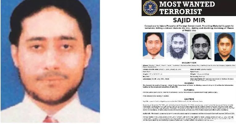Ο Σαγιέντ Μιρ καταζητείται για την υποτιθέμενη συμμετοχή του στις τρομοκρατικές επιθέσεις του 2008 στη Βομβάη της Ινδίας. Μεταξύ 26 Νοεμβρίου 2008 και 29 Νοεμβρίου 2008, δέκα επιτιθέμενοι εκπαιδευμένοι από την ξένη τρομοκρατική οργάνωση Λασκάρ-Ε-Ταγίιμπα (LeT) με έδρα το Πακιστάν πραγματοποίησαν μια σειρά συντονισμένων επιθέσεων εναντίον πολλών στόχων στη Βομβάη, συμπεριλαμβανομένων ξενοδοχείων, καφετεριών και ενός σιδηροδρομικού σταθμού, σκοτώνοντας περίπου 170 άτομα. Έξι Αμερικανοί σκοτώθηκαν κατά τη διάρκεια των τριήμερων επιθέσεων.