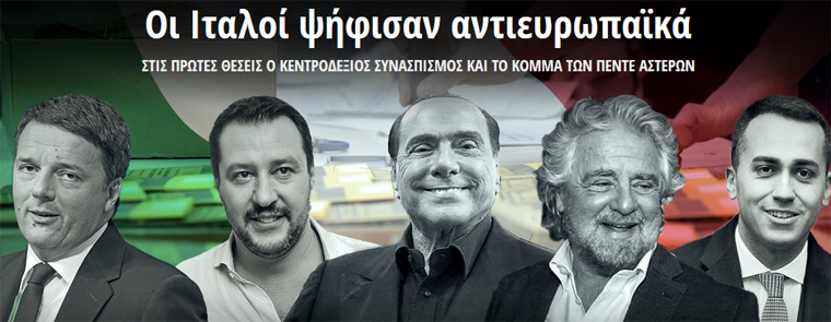 Το κύριο χαρακτηριστικό, πάντως, των ιταλικών εκλογών ήταν ότι αθροιστικά την πλειοψηφία την κέρδισαν τα κόμματα που χαρακτηρίζονται από αντιευρωπαϊσμό, δηλαδή το Κόμμα των Πέντε Αστέρων και το Κόμμα της Λέγκας του Βορρά. Είναι ενδεχομένως ενδεικτικό ότι η Μαρίν Λεπέν συνεχάρη αμέσως τον Ματέο Σαλβίνι, ομόσταβλό της στον χώρο της ευρωπαϊκής Ακροδεξιάς. Ουδείς θα ήθελε να βρίσκεται στη θέση του προέδρου της Ιταλικής Δημοκρατίας, σημειώνουν όλες οι ιταλικές εφημερίδες. Ο εκλογικός αλγόριθμος είναι τελικά τόσο περίπλοκος, που είναι αδύνατο να προβλέψει κάποιος τι θα γίνει, ενώ παραμένει ως κυρίαρχη πολιτική προοπτική η προσφυγή σε νέες επαναληπτικές εκλογές.