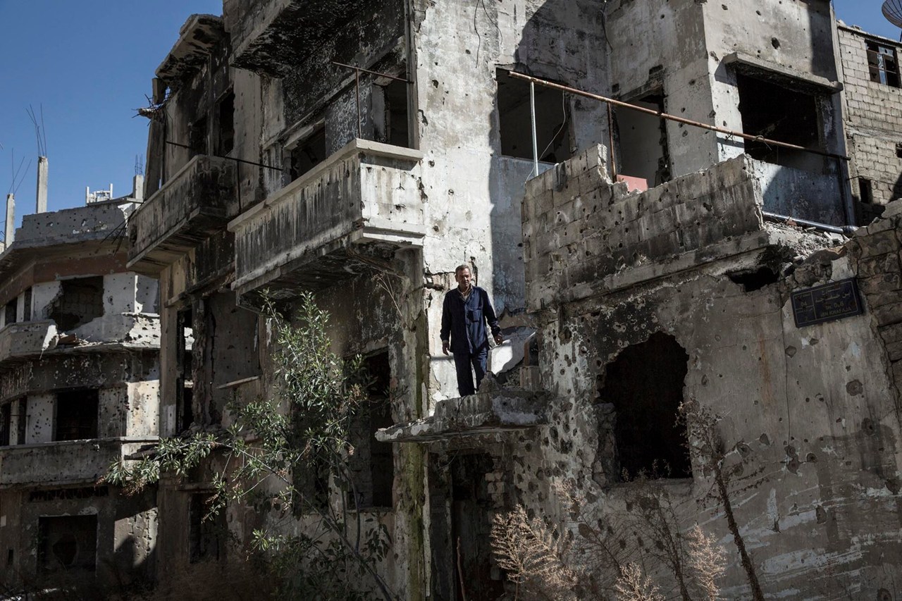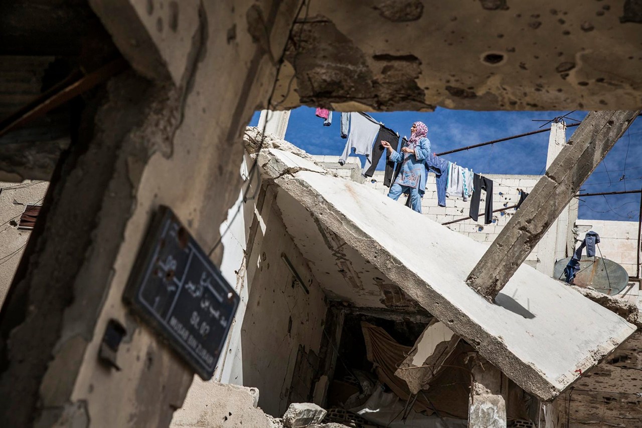 Η 42χρονη Sabah απλώνει τη μπουγάδα της στα ερείπια του σπιτιού της, το οποίο χτυπήθηκε από όλμους πυροβολικού το 2012. Τα τελευταία 4 χρόνια ζούσε με τα 8 παιδιά της σε ένα κοντινό χωριό, ενώ ο άνδρας της σκοτώθηκε στις μάχες. «Πρέπει να είμαστε υπομονετικοί και αισιόδοξοι. Χωρίς αυτά, δεν μπορούμε να προχωρήσουμε. Πρέπει να φανούμε γενναίοι», δηλώνει…