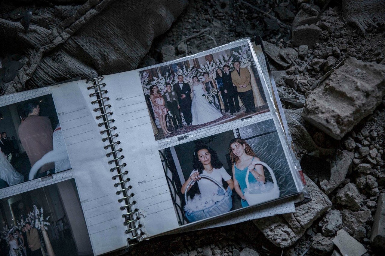 Η ζωή πριν από τον πόλεμο απεικονίζεται σε ένα φωτογραφικό άλμπουμ που βρέθηκε στα ερείπια ενός σπιτιού, στη συνοικία Wadi al-Sayeh…
