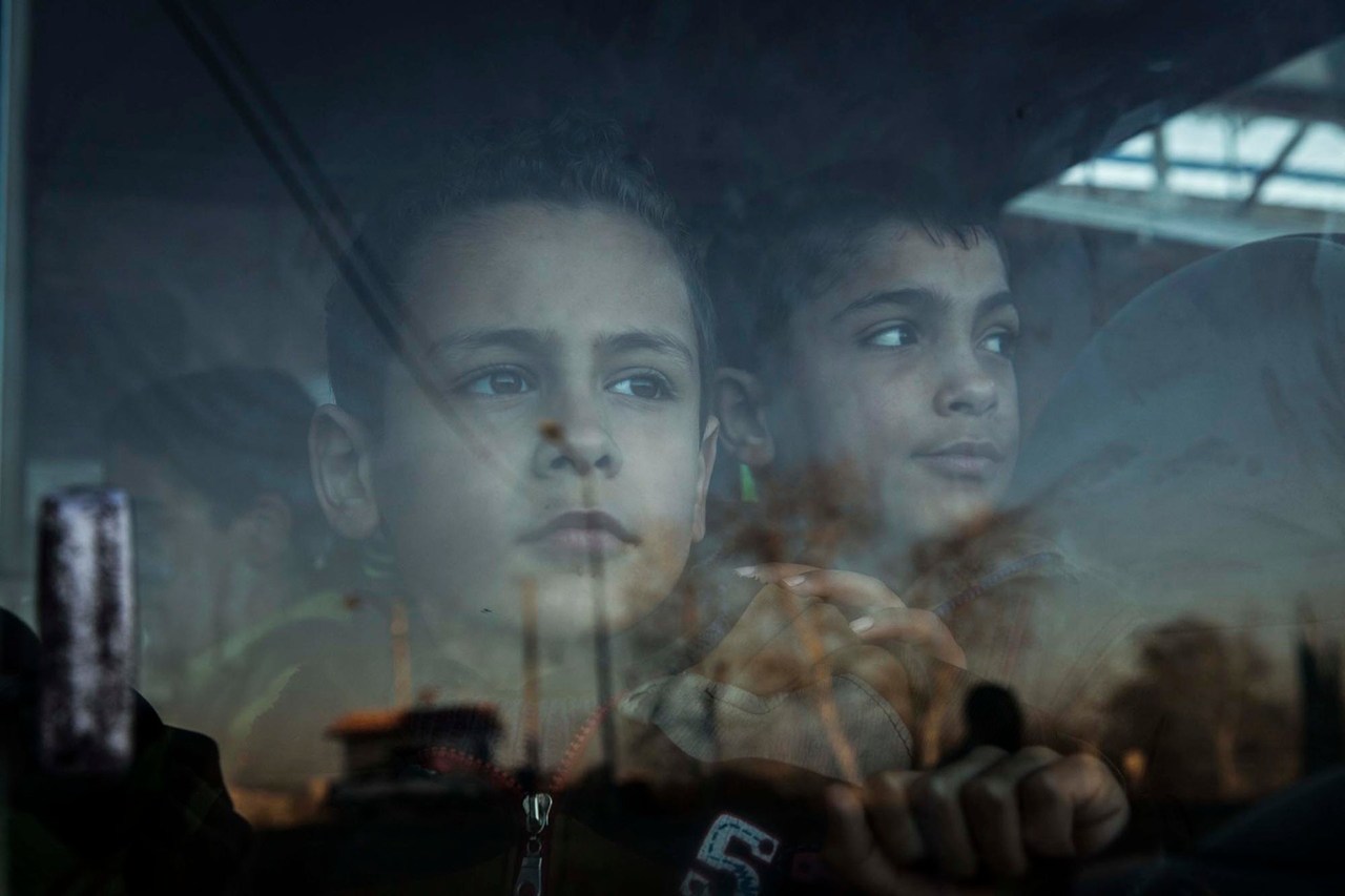 Παιδιά στο σχολικό λεωφορείο, μιας και τα μαθήματα ξεκίνησαν ξανά. Κάποια από τα παιδιά δεν έχουν βρεθεί ακόμα σε σχολική αίθουσα, λόγω του πολέμου που μαίνεται εδώ και 5 χρόνια.