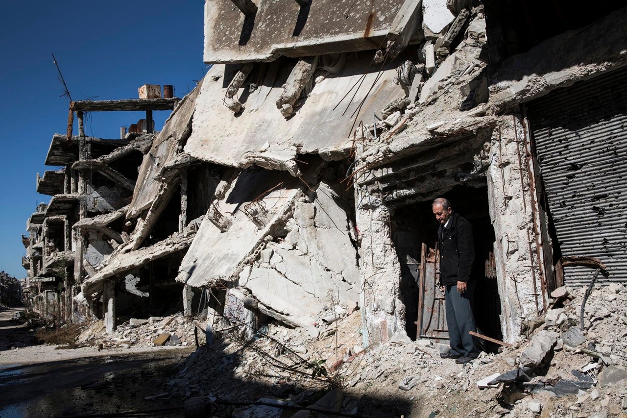 Ένας άνδρας συγκεντρώνει ότι πολύτιμο μπορεί να βρει, στη συνοικία της Παλιάς Πόλης της Χομς. Από τις 36 γειτονιές, οι 12 έχουν μετατραπεί ολοκληρωτικά σε ερείπια…
