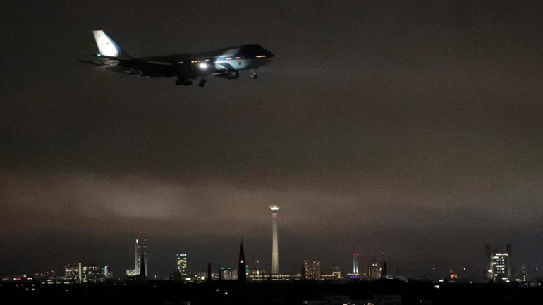 Το “Air Force One” προσγειώθηκε στο στρατιωτικό τμήμα του αεροδρομίου Τέγκελ με τα γερμανικά ΜΜΕ να επισημαίνουν ότι, το ξενοδοχείο στο οποίο θα καταλύσει ο Αμερικανός απερχόμενος πρόεδρος, βρίσκεται δίπλα στην Πύλη του Βραδεμβούργου.