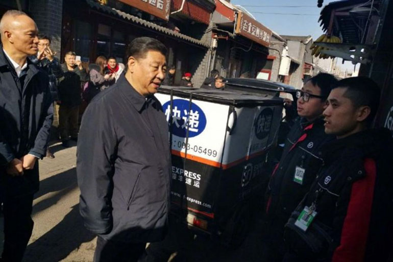 Σε άλλο σημείο της κινεζικής πρωτεύουσας, ο Σι έπιασε κουβέντα με διανομείς, οι οποίοι γυρίζουν όλο το Πεκίνο παραδίδοντας δέματα με τα μηχανάκια τους, την ώρα που περαστικοί περπατούσαν δίπλα του. «Εσείς δεν θα έχετε τη δυνατότητα να πάτε στην ιδιαίτερη πατρίδα σας για το Εαρινό Φεστιβάλ;», ρώτησε ο Σι έναν από τους διανομείς, αναφερόμενος στη γιορτή για το Νέο Κινεζικό Έτος.