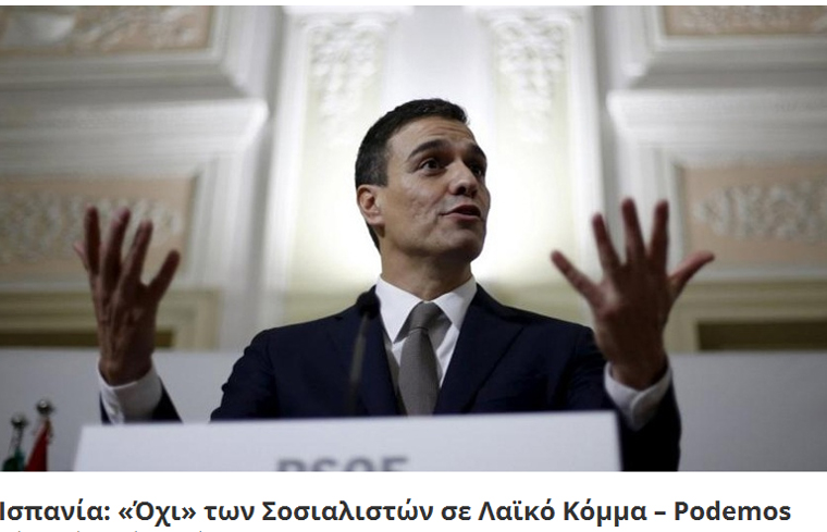 «Το γεγονός ότι οι Ισπανοί θα πρέπει να πάνε στις κάλπες και πάλι έξι μήνες μετά τις τελευταίες εκλογές, αποτελεί ένα κακό προμήνυμα ότι η χώρα δεν μπορεί πλέον να κυβερνηθεί. Οι Ισπανοί πολίτες απαρνήθηκαν ήδη τα δύο κόμματα που κυβέρνησαν τη χώρα μετά την πτώση της δικτατορίας του Φράνκο και σε συνδυασμό με την πολιτική της λιτότητας και τη μεγάλη ανεργία ,έχει δημιουργηθεί ένα εκρηκτικό μίγμα…».