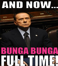 Πρώτος διδάξας… ο Καβαλιέρε ή αλλιώς mr Bunga Bunga, έτσι άλλωστε χαρακτηρίστηκαν τα πάρτι οργίων, διά αιθέριων υπάρξεων, σε πολυτελείς βίλες επιχειρηματιών στη γειτονική Ιταλία, για τον οποίο έφτασε το πλήρωμα του χρόνου και εγκατέλειψε στη σκιά των σκανδάλων τον πρωθυπουργικό θώκο.