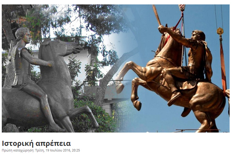 Την ώρα που το ελληνικό κράτος απαξιεί ουσιαστικά μη αξιοποιώντας στοιχεία της πολιτιστικής μας κληρονομιάς, όπως συμβαίνει με την επί σειρά ετών αναζήτηση χώρου για το στήσιμο του άγαλματος του Μεγάλου Αλεξάνδρου που φιλοτέχνησε ο αείμνηστος γλύπτης Γιάννης Παππάς (διαβάστε το ρεπορτάζ του zougla.gr εδώ), οι Σκοπιανοί συνεχίζουν να… κοσμούν τις πόλεις του δαπανώντας μάλιστα τεράστια ποσά, με αγάλματα του Μακεδόνα στρατηλάτη.