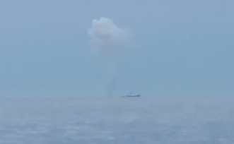 Μακρινό πλάνο από το πλοίο όταν δέχθηκε το πρώτο πλήγμα