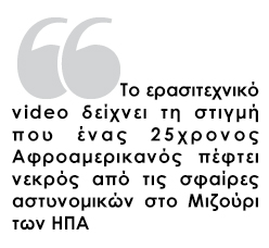 Σοκ προκαλεί ερασιτεχνικό video που καταγράφει τη στιγμή κατά την οποία ένας αστυνομικός πυροβολεί και σκοτώνει τον Καζίμ Πάουελ, τον δεύτερο Αφροαμερικανό που χάνει τη ζωή του μέσα σε 10 ημέρες στο Μιζούρι των ΗΠΑ.