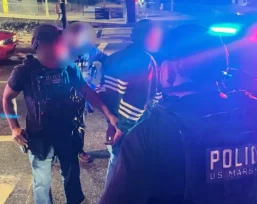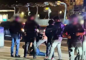 Στις εικόνες, ο 32χρονος φαίνεται στο έδαφος με τα χέρια δεμένα πίσω από την πλάτη, ενώ στη συνέχεια οδηγείται σε περιπολικό.