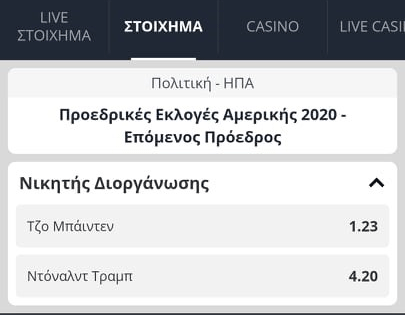 Την ίδια ώρα η απόδοση για να παραμείνει στο Οβάλ Γραφείο ο υποψήφιος των Ρεπουμπλικανών έχει εκτοξευτεί σε αποδόσεις που ξεκινούν από 4,5 και φτάνουν μέχρι το 5,00.