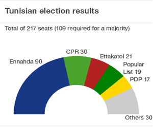 Έτοιμος να σχηματίσει κυβέρνηση συνασπισμού μέσα στις επόμενες δέκα ημέρες εμφανίζεται ο Rachid Ghannouchi, επικεφαλής του ισλαμικού κόμματος, Ενάχντα που κέρδισε τις εκλογές της 23ης Οκτωβρίου στην Τυνησία