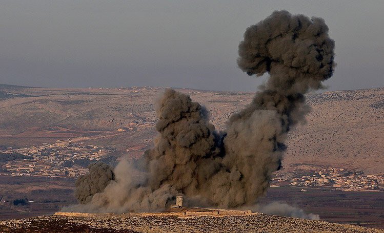 Εικονολήπτης του πρακτορείου ειδήσεων Ρόιτερς που βρίσκεται στα σύνορα με τη Συρία μετέδωσε νωρίτερα ότι είδε πολεμικά αεροσκάφη να ίπτανται πάνω από την περιοχή και να βομβαρδίζουν περιοχές στη συριακή επικράτεια.
