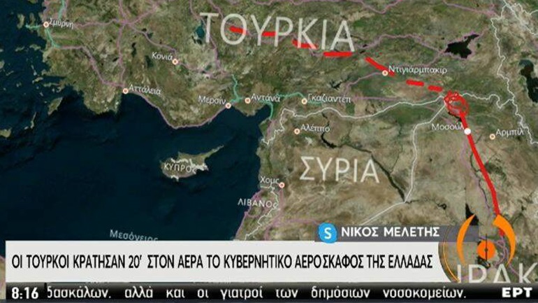 Οι Τούρκοι κράτησαν χθες το βράδυ 20΄ στον αέρα το κυβερνητικό αεροσκάφος της Ελλάδας, που μετέφερε τον υπουργό Εξωτερικών Νίκο Δένδια στην Αθήνα, πάνω από τα σύνορα Τουρκίας-Ιράκ, αρνούμενοι να χορηγήσουν άδεια υπερπτήσης, μεταδίδει ο διπλωματικός ρεπόρτερ της ΕΡΤ, Νίκος Μελέτης.