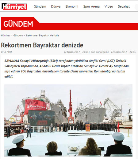 Η ναυπήγηση του αποβατικού σκάφους «Bayraktar» έγινε χτες στην Τουρκία παρουσία του προέδρου της χώρας Τ. Ερντογάν.