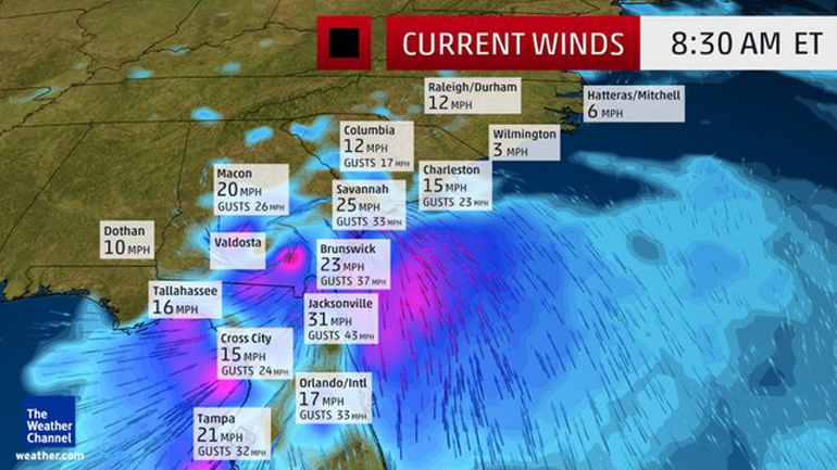 «Υπάρχει μεγάλη μάζα νερού σε δύο σημεία στη Φλόριντα και ατέλειωτες πλημμύρες σε Βόρεια και Νότια Καρολίνα, πολλά δέντρα έπεσαν αλλά τίποτα ευτυχώς μέχρι στιγμής δεν μας ανησυχεί περισσότερο», δήλωσε ο τοπικός αξιωματούχος Τάμπρεϊ Λέιν στο NBC.